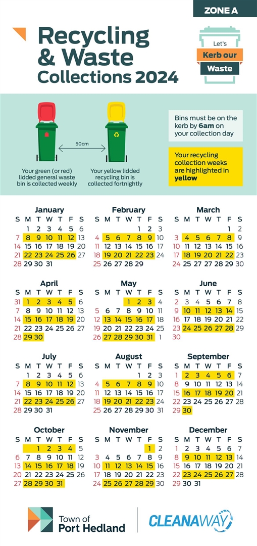 Recycling calendar 2024 - Zone A (06/02/2024)