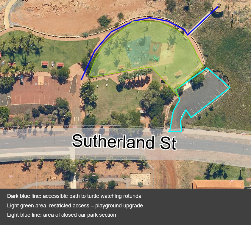From today, access to the Cemetery Beach turtle watching rotunda will be accessible via the path from the main car park.