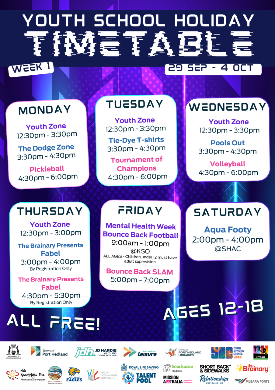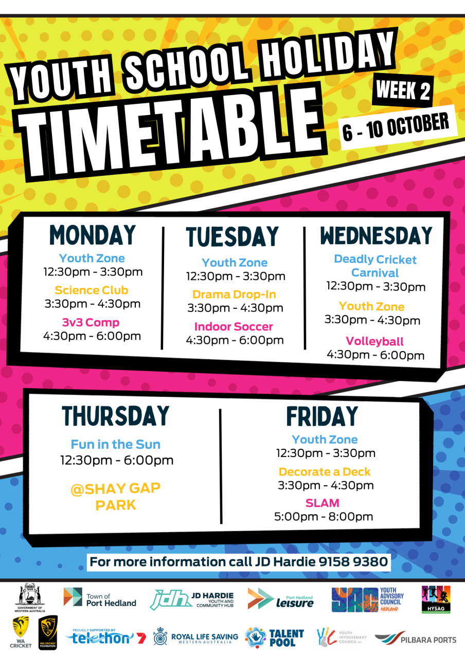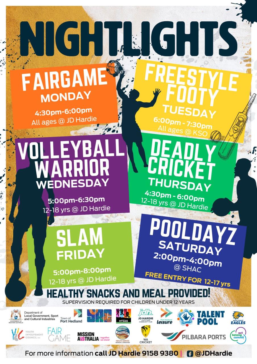The JDHYCH is ideally situated to cater for a range of programs and activities. It is located a short distance from the South Hedland Town Centre, two local primary schools, a high school and local TAFE.